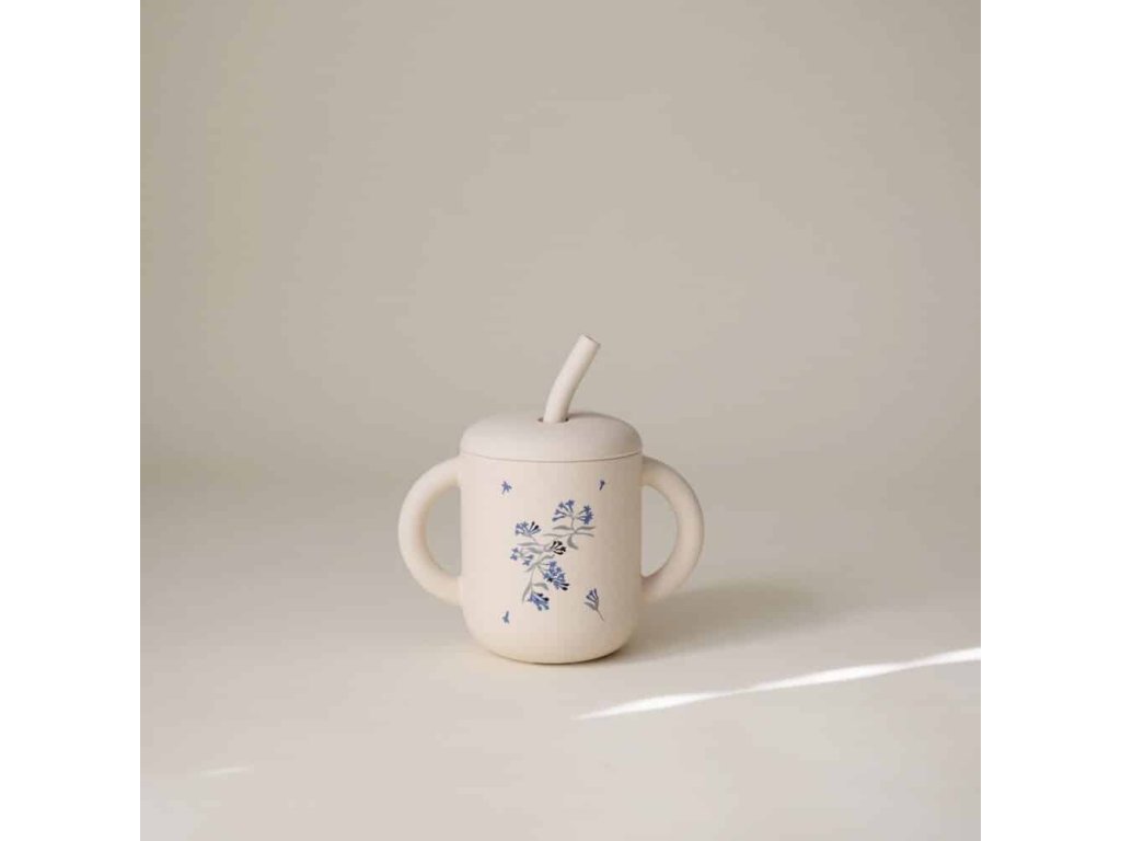SILIKÓNOVÝ POHÁRIK SO SLAMKOU MUSHIE - LILAC FLOWERS