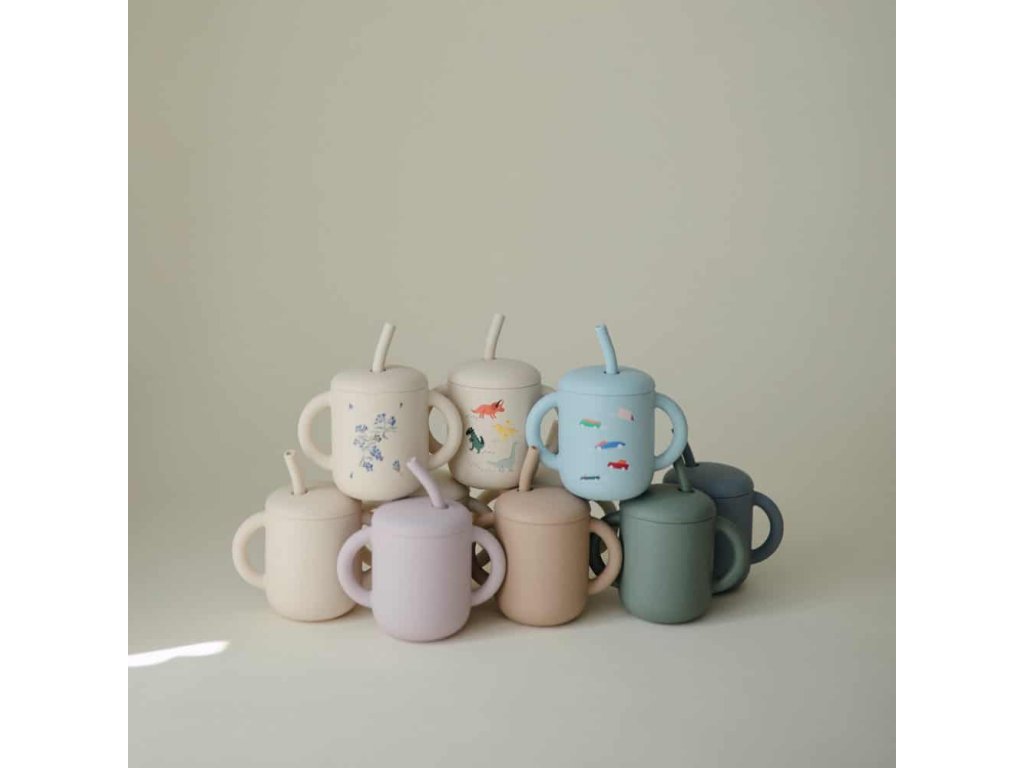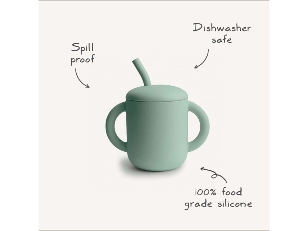 Pohár je vyrobený zo 100% potravinárskeho silikónu a dodáva sa s odnímateľným viečkom a jemnou slamkou pre detské ďasná a prvé zúbky.