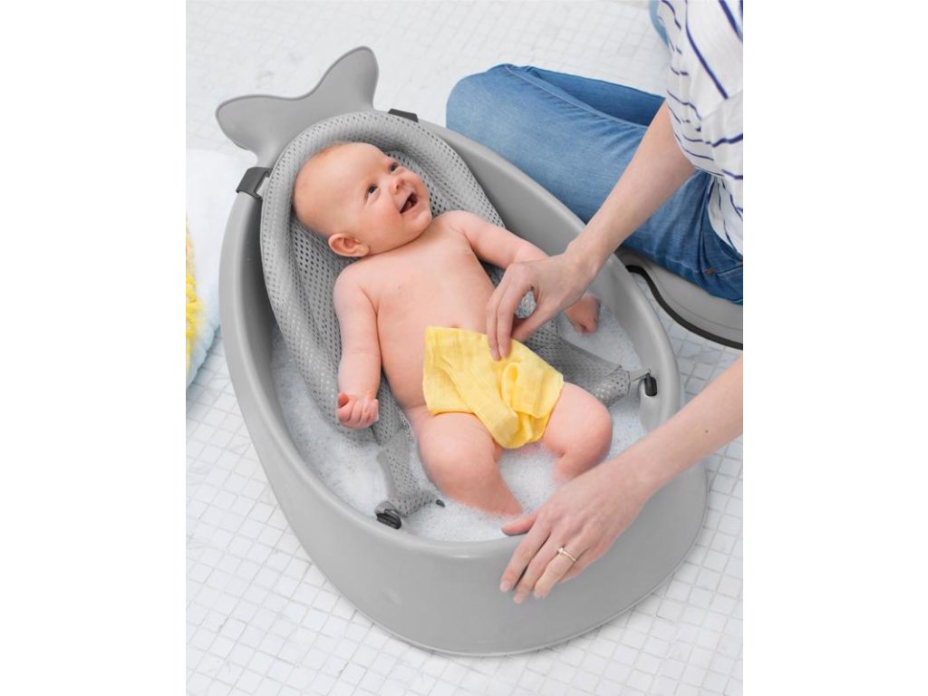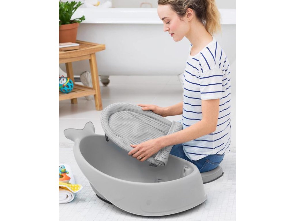 Vanička Moby bude jedinou vaničkou, ktorú budete potrebovať! Vďaka nastaveniu do troch polôh rastie spolu s vašimi deťmi. Podložka sa zaisťuje do dvoch ergonomických polôh: vyššia pre celoplošnú podperu a nižšia pre oporu pri sedení. Dvojvrstvová sieťovina a krajná konštrukcia bezpečne a pohodlne držia dieťatko. Ako sa dieťatko naučí sedieť, popruh možno odstrániť a kúpanie sa môže stať zábavou v priestrannej vaničke plnej pohodlia bez nepríjemných výbežkov.