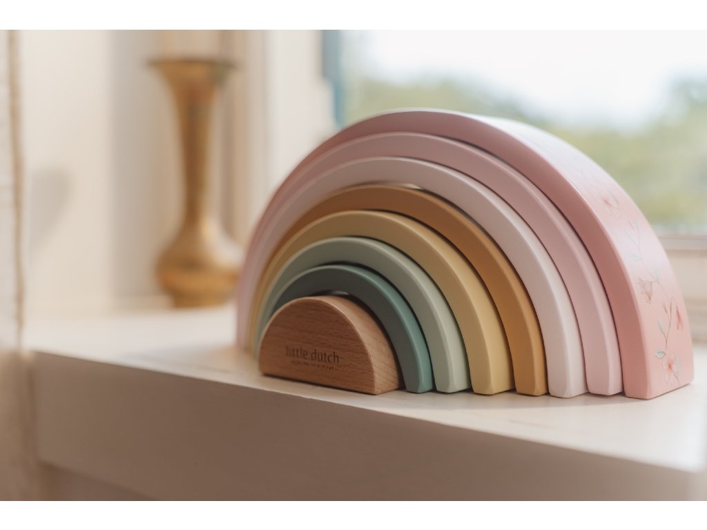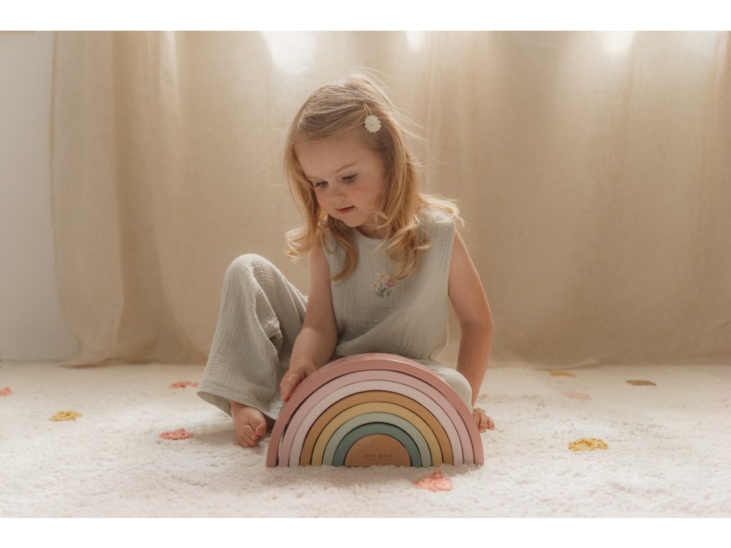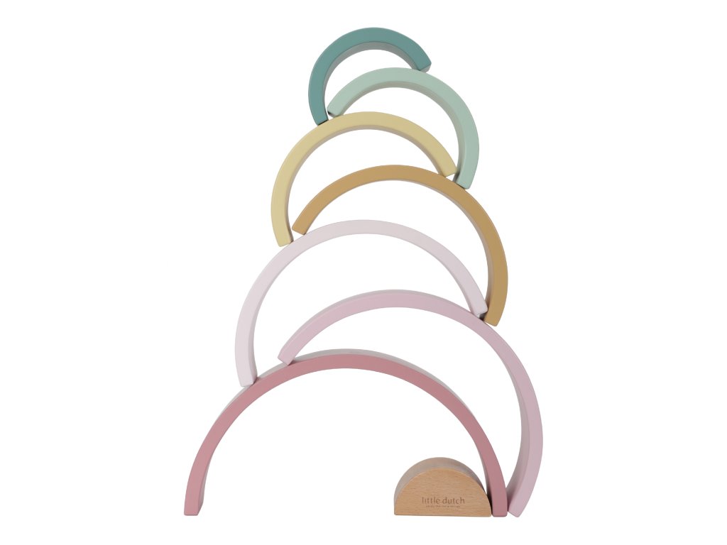 Preneste dúhu z oblohy do detskej izby! Krásna drevená skladačka v tvare dúhy umožní deťom používať svoju predstavivosť na vytváranie rôznych tvarov. Dokáže s jej pomocou postaviť napríklad železničný tunel, domček pre malé bábiky alebo most pre autá. Možností je nekonečne veľa!