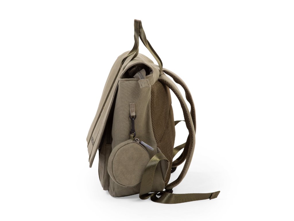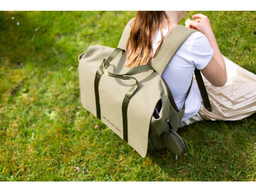 Polstrovaný chrbát zo sieťoviny zaisťuje cirkuláciu vzduchu pri kontakte s telom. Nastaviteľné ramenné popruhy majú ergonomický tvar S, takže lepšie držia na svojom mieste. Držadlo umožňuje nosenie tašky v ruke. V spodnej časti tašky sú malé kovové cvočky, aby sa dno tašky nedotýkalo priamo zeme.