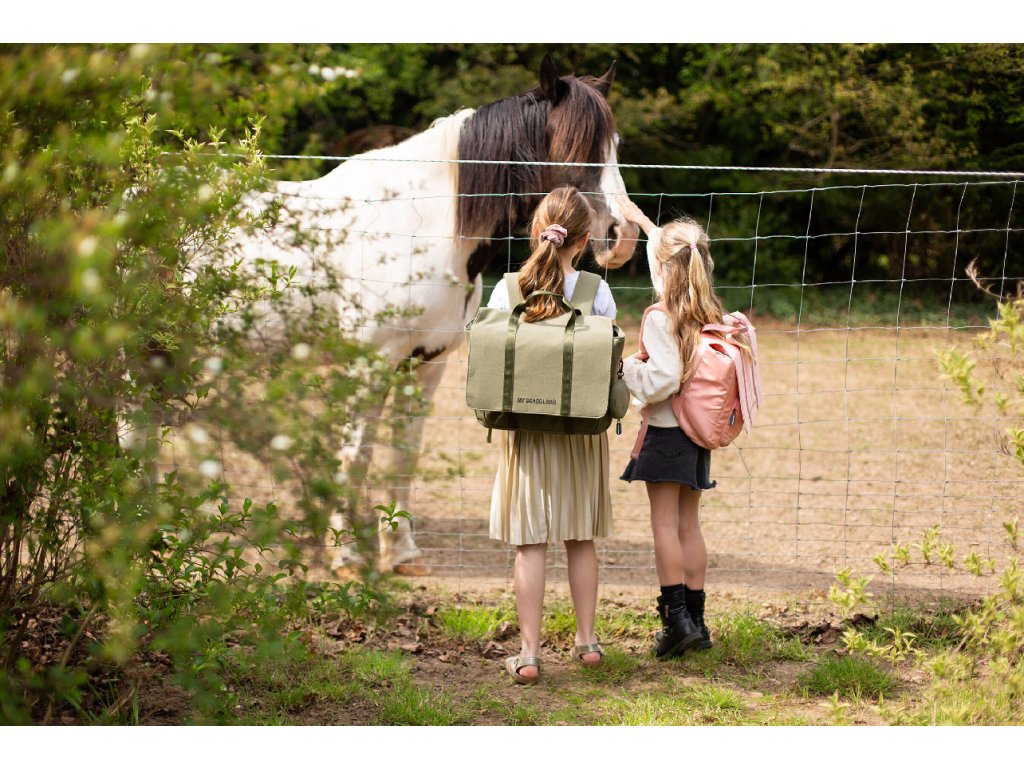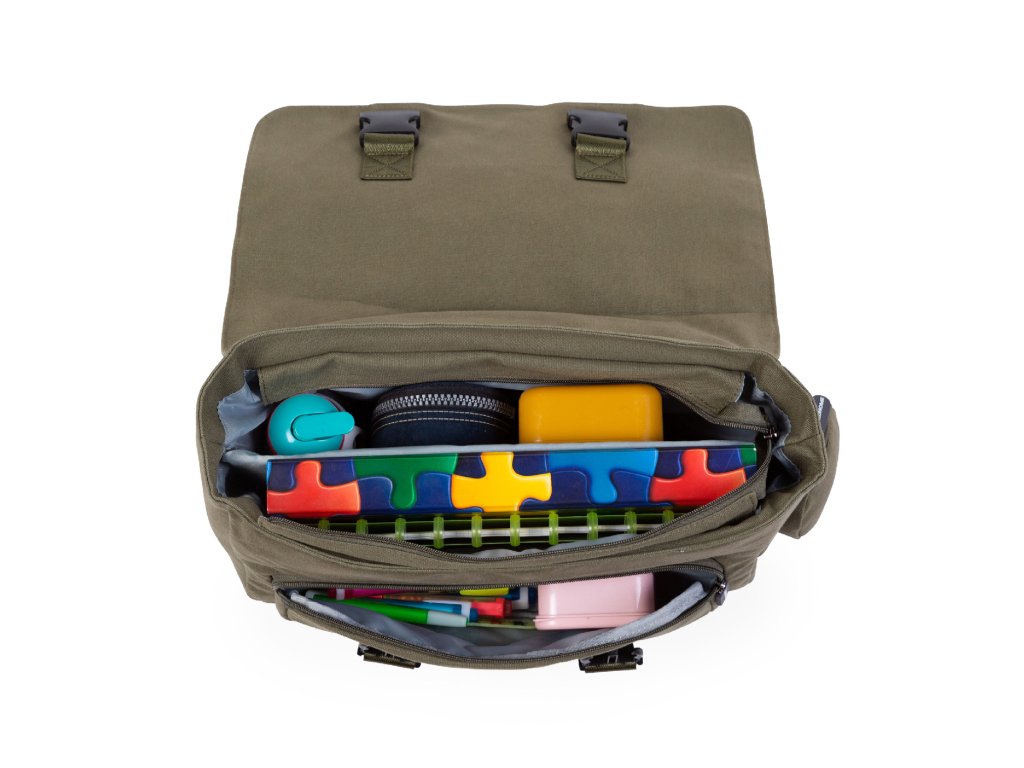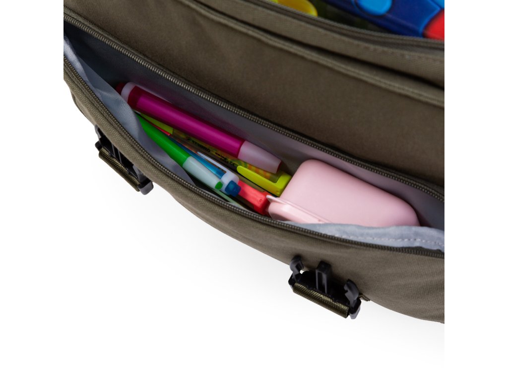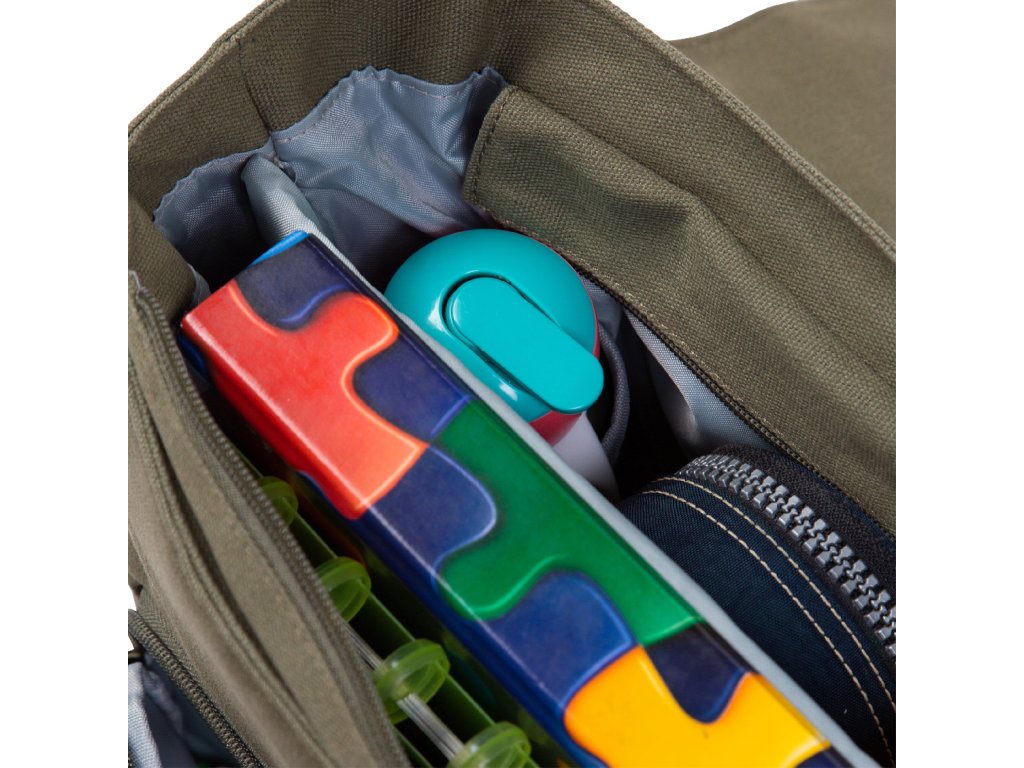Originálna školská taška je ideálna pre deti od 6 do 9 rokov, je možné ju používať od prvej triedy základnej školy. Taška má dva oddelené vnútorné priestory, veľkú vonkajšiu a menšiu vnútornú vrecko na zips pre prehľadné uloženie školských potrieb aj desiaty. V hlavnom priestore je umiestnené termoizolačné vrecko na fľašu s pitím.
