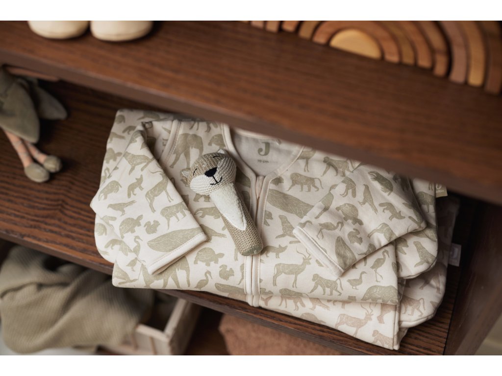 Praktický spací vak s oddeliteľnými rukávmi ponúka variabilitu pri použití podľa počasia a teploty v miestnosti. Vďaka jemnej výplni je vhodný na použitie namiesto perinky. Spací vak zaistí, že sa dieťa v noci neodkope a bude tak po celú dobu spánku v pohodlí a teple bez rizika prechladnutia. Kryté zipsy v prieramkoch umožňujú ľahké oddelenie rukávov, pokiaľ chcete spací vak používať v teplejšom prostredí bez rukávov. Zips na prednej strane umožňuje ľahké vloženie dieťaťa do spacieho vaku a prebaľovanie počas spania.
