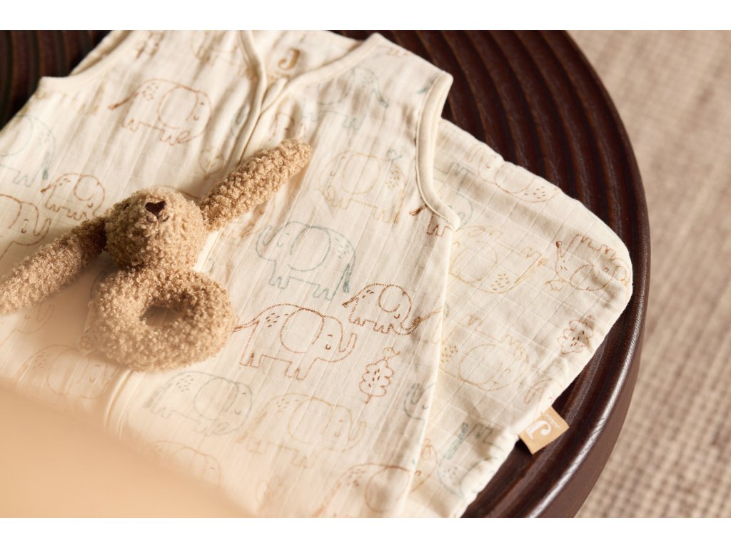 Ľahký spací vak z jemnej 100% bavlny má zips na prednej strane pre ľahké vloženie dieťaťa do spacieho vaku aj prebaľovanie počas spania.
