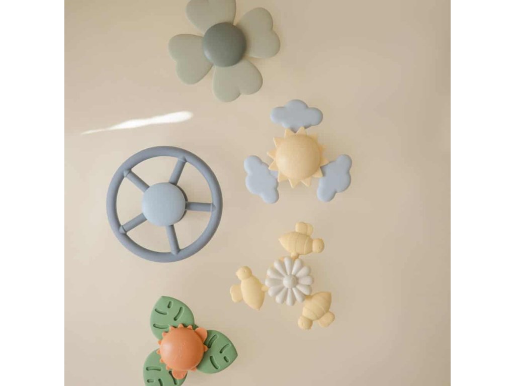 Hračka je vyrobená z plastu a potravinárskeho silikónu a je navrhnutá tak, aby deťom vytvárala zmyslové zážitky. Má tiež prísavku, ktorá zaisťuje, že hračka zostane na svojom mieste – to zabraňuje náhodným pádom a podporuje samostatnú hru. Vyskúšajte funkciu prísavky na dverách, stoličkách, vo vani atď.
