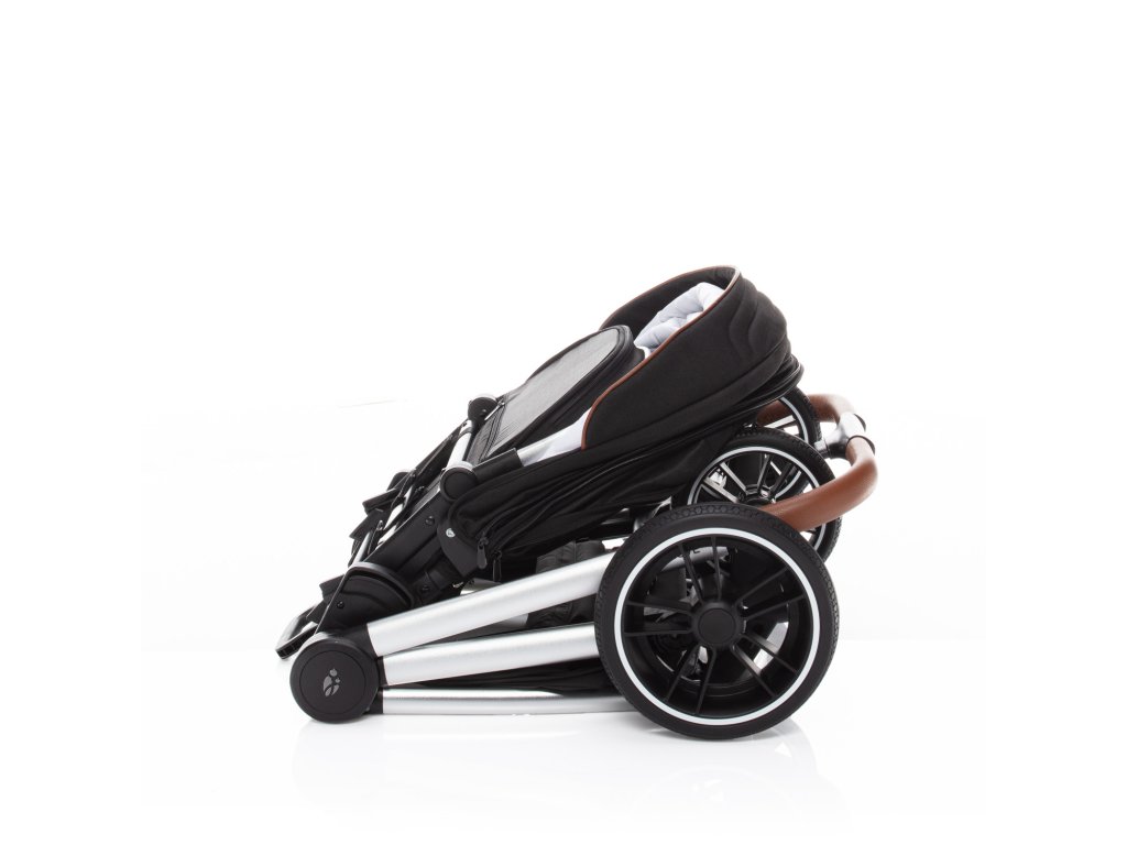Ak ste vyššieho vzrastu, u kočíku iste oceníte výškovo nastaviteľnú rukoväť, ktorá je, rovnako ako hrazda, vyrobená z eko-kože. Čo tiež podčiarkuje moderný dizajn kočíka. Pre ľahšiu manipuláciu môžete hrazdu šikovne odopnúť a odkloniť na stranu. Tým si uľahčíte vkladanie dieťaťa do kočíka, kde ho bezpečne pripútate 5bodovým bezpečnosťným pásom. Pre zaistenie kočíka samozrejme nechýba ani centrálna brzda.