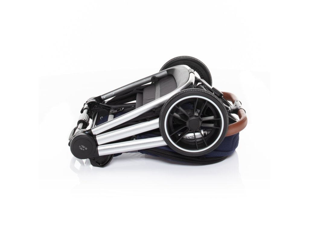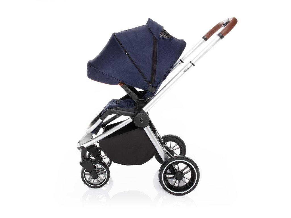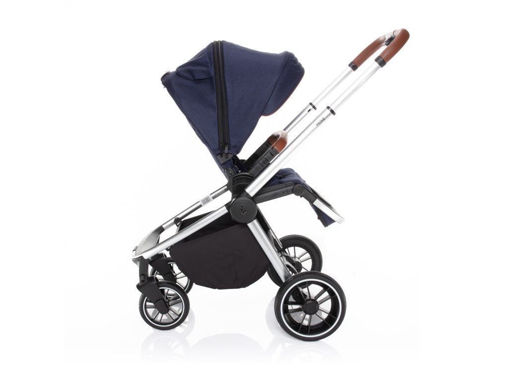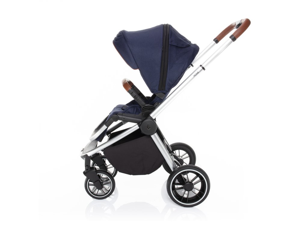 Ak ste vyššieho vzrastu, u kočíku iste oceníte výškovo nastaviteľnú rukoväť, ktorá je, rovnako ako hrazda, vyrobená z eko-kože. Čo tiež podčiarkuje moderný dizajn kočíka. Pre ľahšiu manipuláciu môžete hrazdu šikovne odopnúť a odkloniť na stranu. Tým si uľahčíte vkladanie dieťaťa do kočíka, kde ho bezpečne pripútate 5bodovým bezpečnosťným pásom. Pre zaistenie kočíka samozrejme nechýba ani centrálna brzda.