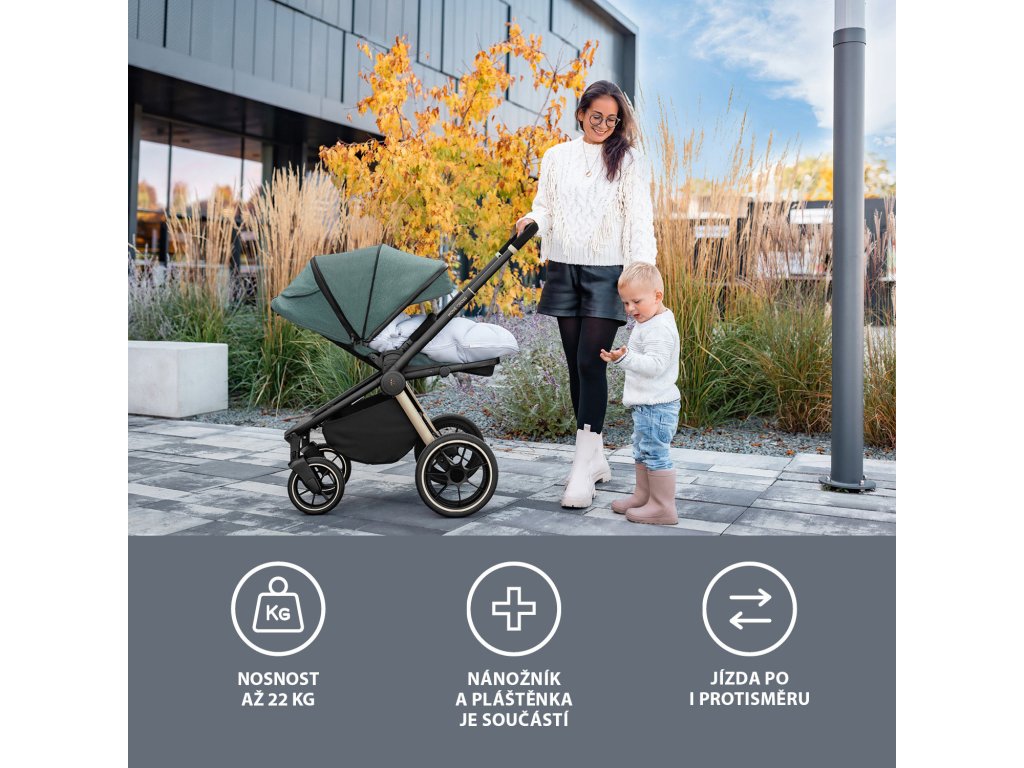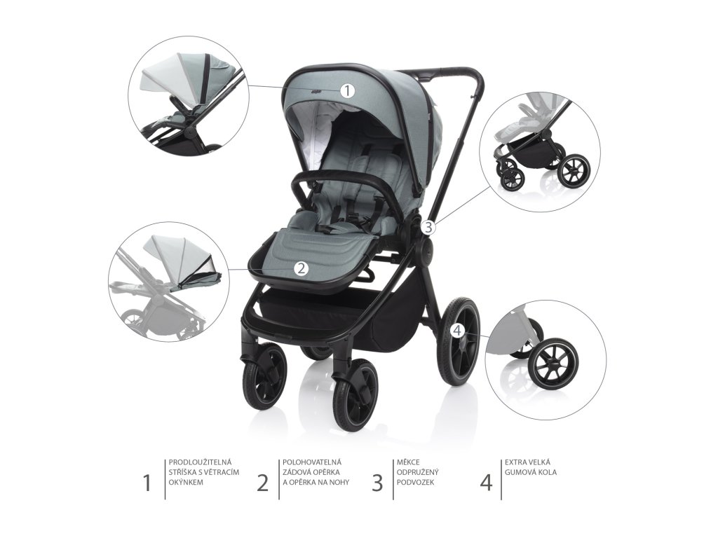 jazdy, aby mohlo pozorovať okolitý svet. V oboch smeroch možno kočík pohodlne