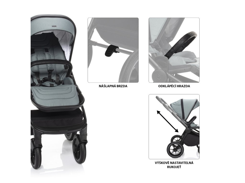zložiť. Pre jednoduchšie sedenie má kočík Move Cross sklopnú hrazdu.