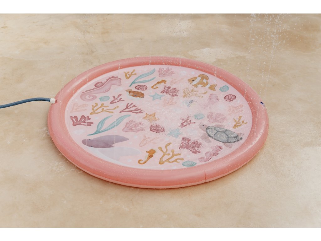 Originálna hracia podložka s vodotryskom, ktorý vytvoríte jednoducho pripojením na záhradnú hadicu s pomocou priloženej spojky. Podložka s krásnou potlačou motívov zo života pod morskou hladinou je ideálny doplnok na záhradu počas horúcich letných dní. Deti si budú užívať behanie cez striekajúci vodotrysk aj hranie sa s vodou na podložke, ktorá funguje ako plytký bazénik.