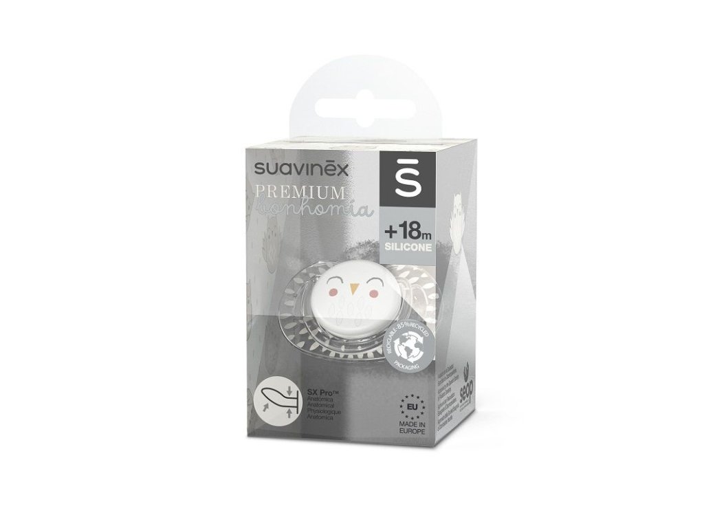 SUAVINEX | Cumlík anatomický BONHOMIA +18 m SOVIČKA - biela