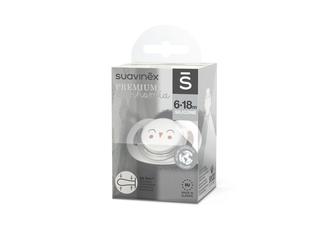 SUAVINEX | Cumlík SX PRO fyziologický BONHOMIA 6/18 m SOVIČKA - biela