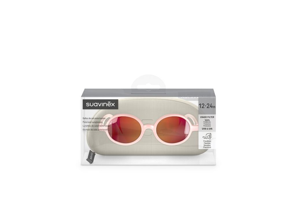 SUAVINEX | Detské okuliare - 12/24 mesiacov polarizované s puzdrom 2024 - ružové guľaté
