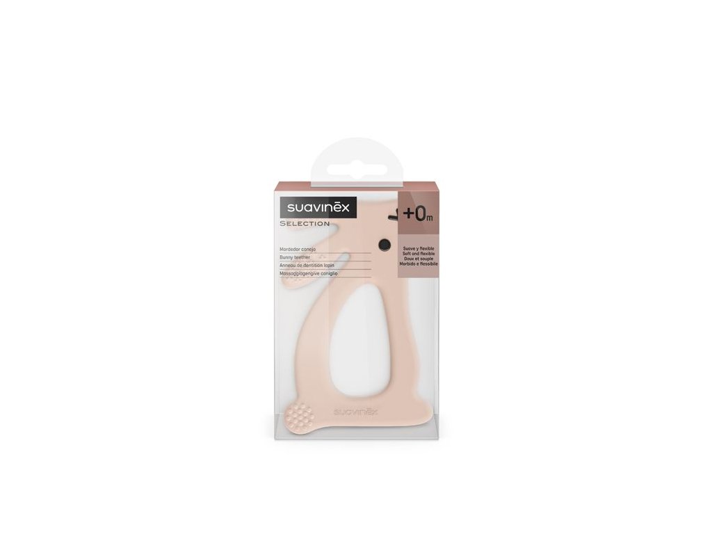 Hryzátko v tvare zajačika s drobnými výstupkami pre úľavu detských ďasien. Evolučné hryzátka sú bezpečné, ergonomické, ľahké a veľmi zábavné.