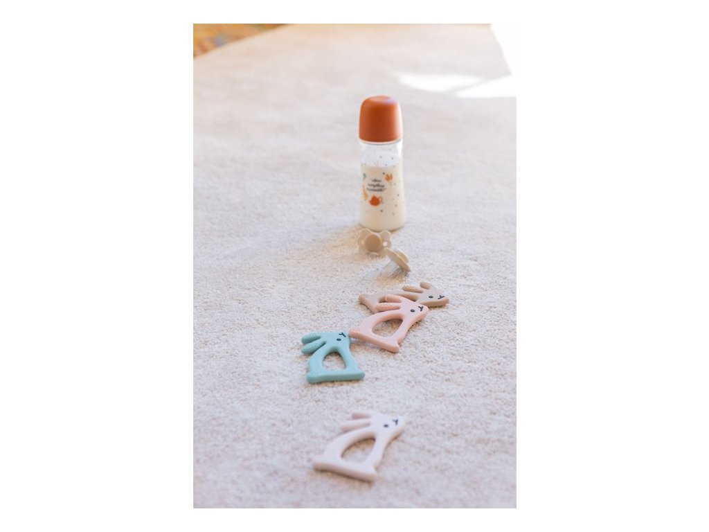 Hryzátko v tvare zajačika s drobnými výstupkami pre úľavu detských ďasien. Evolučné hryzátka sú bezpečné, ergonomické, ľahké a veľmi zábavné.