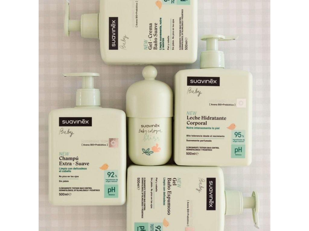 Nová řada svým složením inovované dětské pečující kosmetiky Suavinex přišla právě na pulty španělských lékáren. S jedinečným složením inspirovaným kožním mikrobiomem. Odbornost značky v péči o dětskou pokožku je zárukou úspěchu těchto čtyř produktů: Pěnový koupelový gel 300m, EXTRA jemný - šampon 300ml, Hydratační tělové mléko 300 ml a JEMNÝ koupelový krémový gel 300ml.