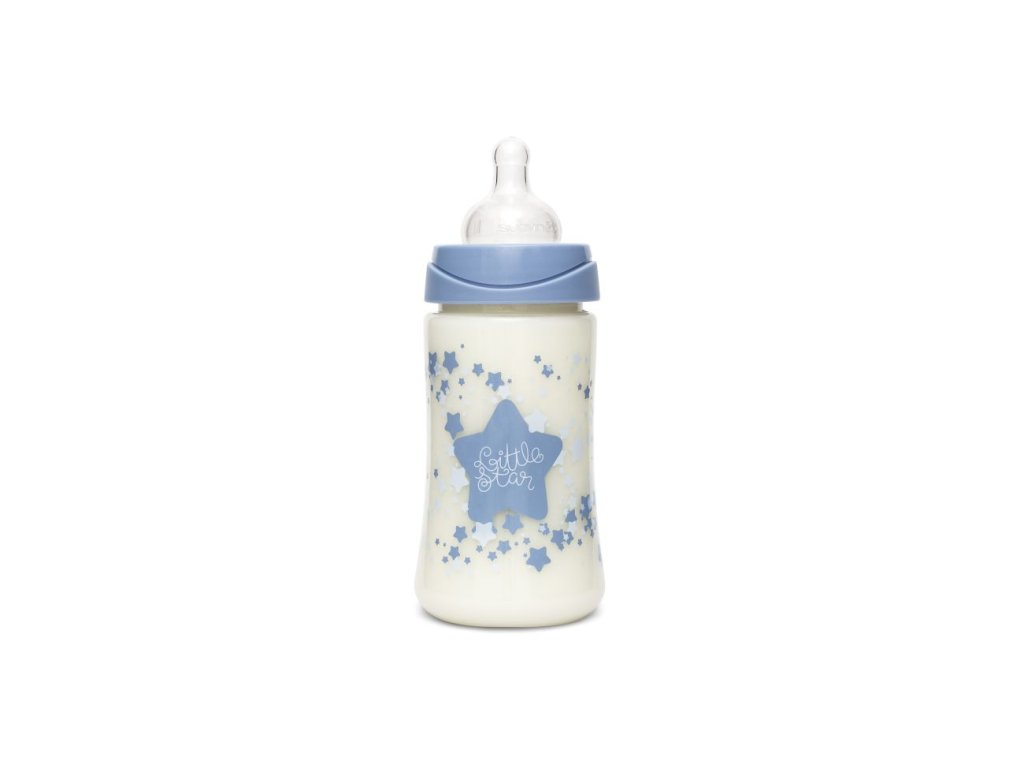 Širokohrdlá fľaša umožňuje rodičom jednoduchšie umývanie a prípravu pokrmu a vďaka svojmu širokému dnu je lepšie stabilná. Jej ergonomický tvar podporuje lepšie uchopenie počas kŕmenia bábätka. Má guľatý silikónový náhradný cumlík a anti-kolikové prieduchy, ktoré zamedzujú hromadeniu vzduchu a jeho prehĺtaniu počas kŕmenia, čím sa znižuje pravdepodobnosť vzniku novorodeneckej koliky.