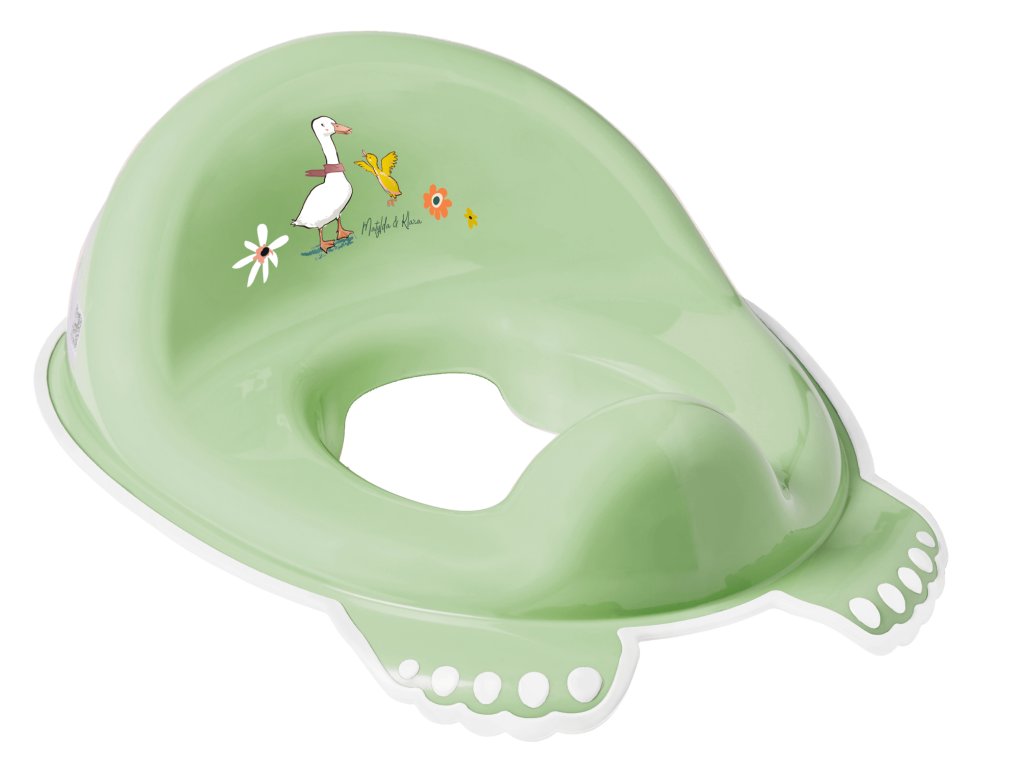 Spodná strana sedátka má protišmykovú úpravu pre väčšie bezpečie vášho dieťaťa. Sedí ku väčšine záchodových dosiek. Pomáha deťom naučiť sa samostatne používať toaletu.