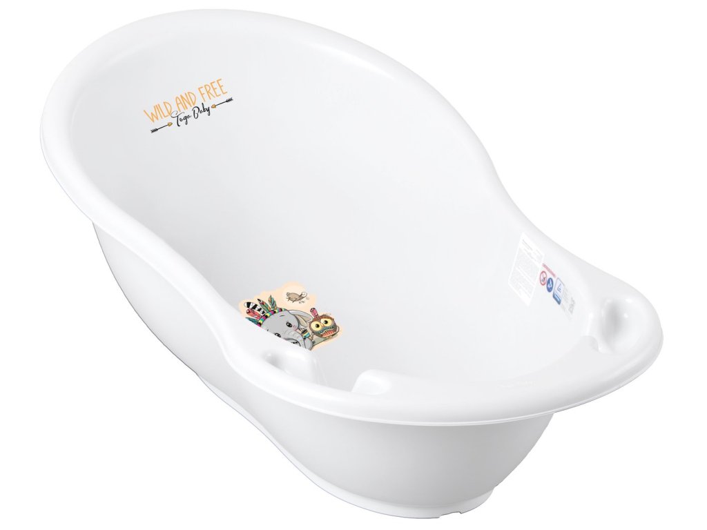 TEGA BABY Vanička malá s výpustom, Malý Sloník 86 cm - Biela