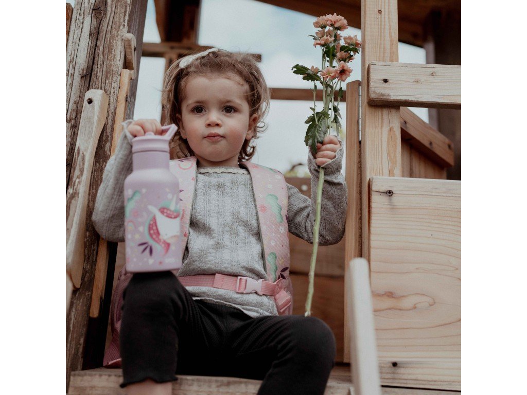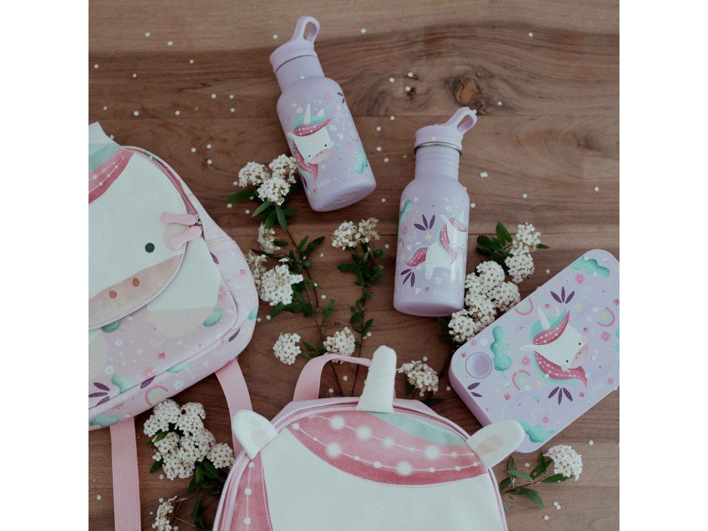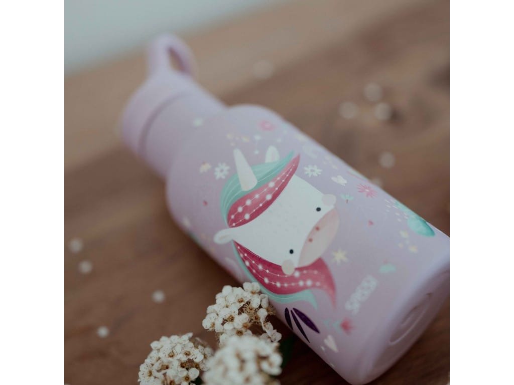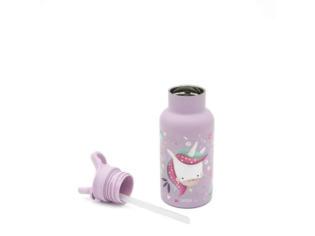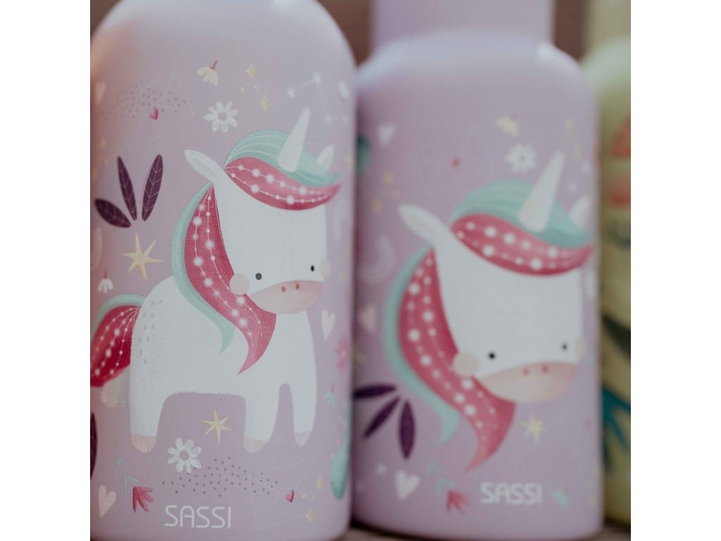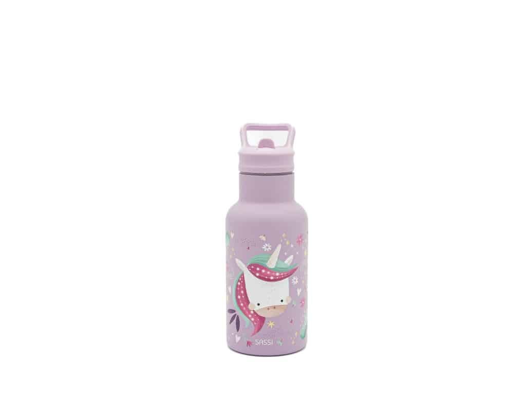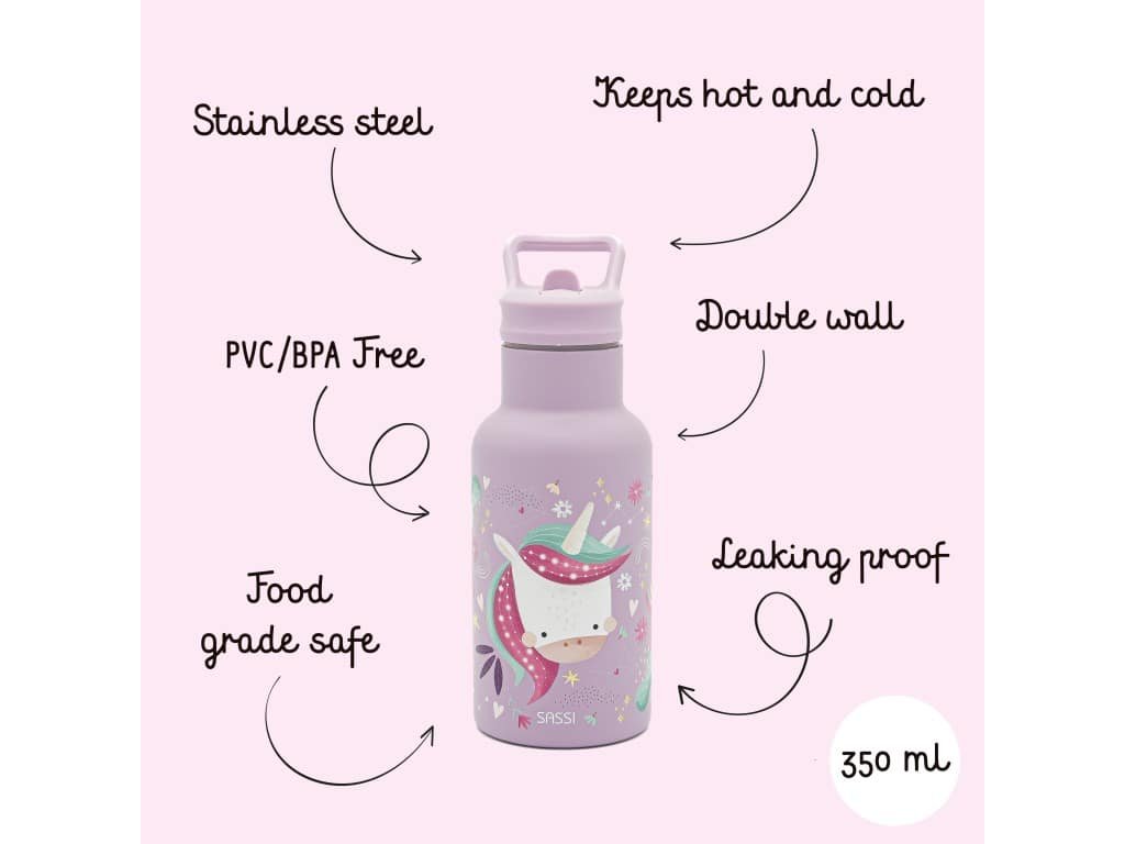 Termofľaša so slamkou s motívom pôvabného jednorožca Sparklyho bude spoločníkom na tisíc dobrodružstiev. S objemom 350 ml udrží nápoj teplý aj studený a vďaka slamke je ideálna aj pre menšie deti. Vnútro je z nehrdzavejúcej ocele, no fľaša zostáva ľahká a ľahko prenosná vďaka praktickému uzáveru s uškom. S termofľašou SASSI môžu aj tí najmenší slobodne objavovať svet.