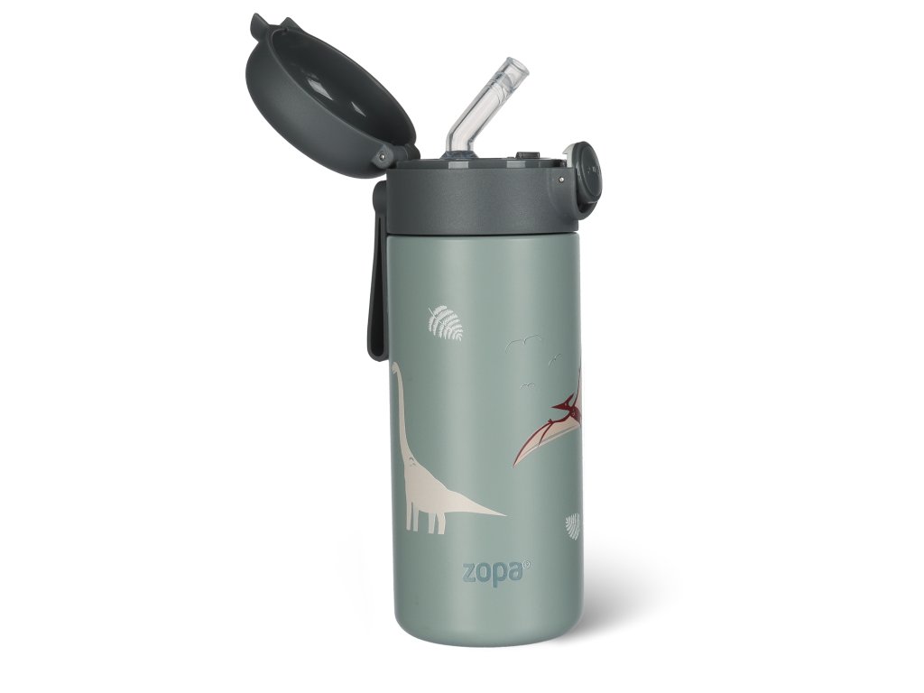 Termoska na tekutiny s brčkem a silikonovým držákem 350 ml, Dino