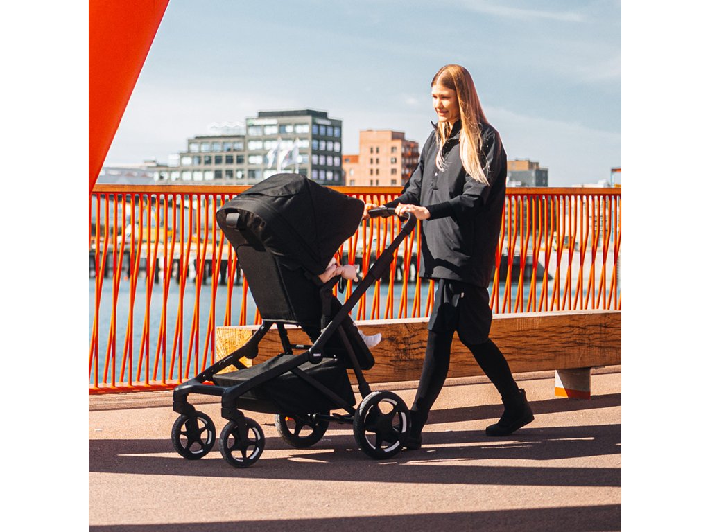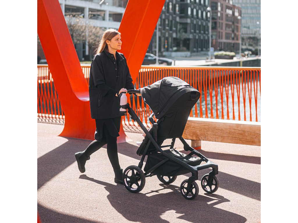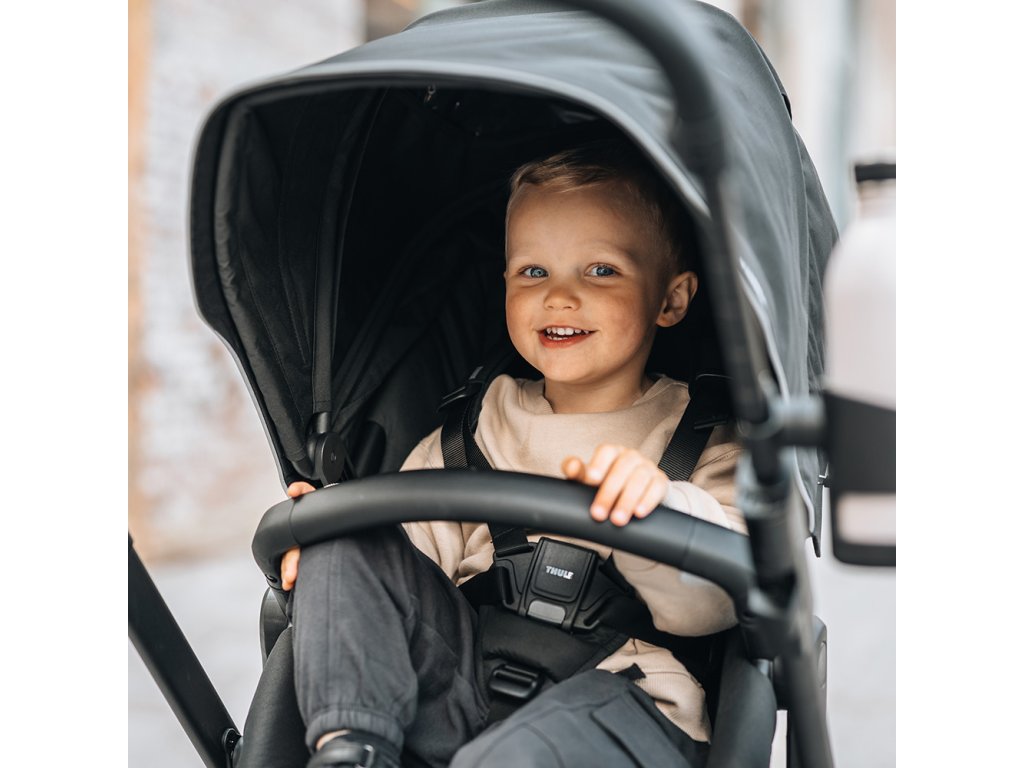 Vďaka pevnému, ale ľahkému podvozku a odpruženiu všetkých kolies ponúka Thule Sleek 2 hladkú a kontrolovanú jazdu aj na nerovnom povrchu. Vetraná strieška poskytuje ochranu pred UV žiarením UPF 50+ a rastie spolu s dieťaťom.