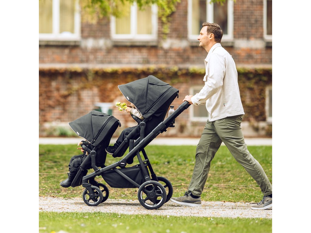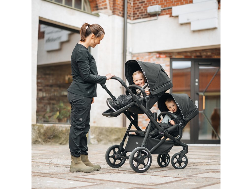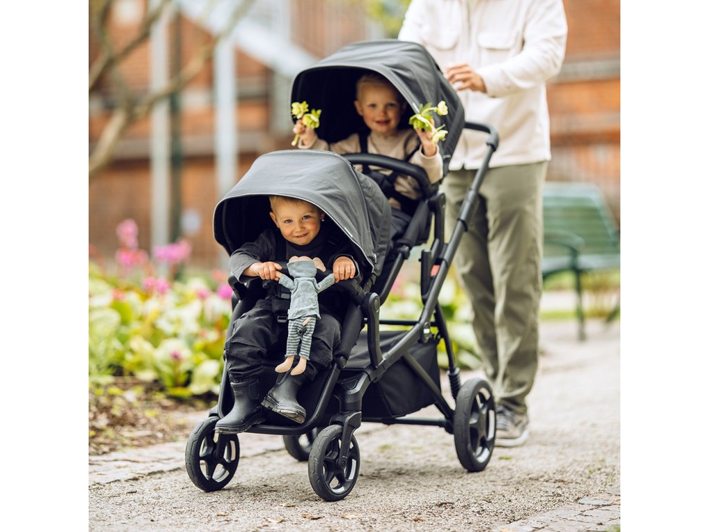 A ako sa rodina rozrastá, rastie aj kočík: Začnite s hlbokou vaničkou a s príchodom druhého dieťaťa pridajte súrodeneckú sedačku, aby sa obaja mohli pohodlne voziť blízko seba. Neskôr možno kočík rozšíriť na plnohodnotný dvojitý kočík s dvoma sedačkami pre batoľatá. Obe sedačky disponujú prémiovými funkciami, ako sú magnetické pracky, nezávislé polohovanie a nastaviteľné opierky nôh, ktoré ponúkajú rovnaké pohodlie a ochranu pre obe deti.