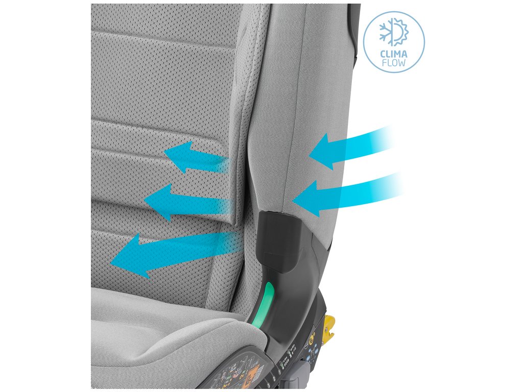 - funkcia ClimaFlow pre optimálnu tepelnú pohodu dieťaťa - špeciálny vzor a pena operadla spolu s priedušnou tkaninou prispievajú k dobrej cirkulácii vzduchu po celú dobu jazdy