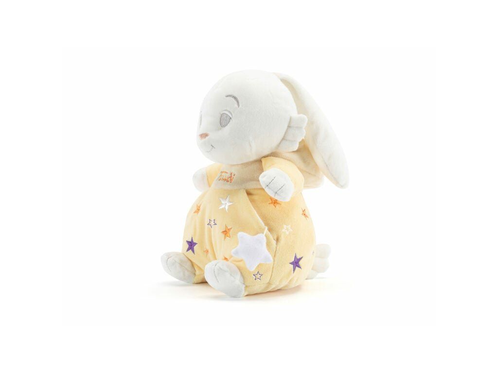 Séria Trudi Baby Star prináša do detských izieb harmóniu a nehu. Veľká verzia zajačika (26 cm na výšku) je vytvorená z tých najjemnejších materiálov, ktoré pripomínajú dotyk mäkkého obláčika. Sladké línie a upokojujúce farby sú špeciálne zvolené tak, aby bábätko pred spaním zbytočne nerozptyľovali, ale naopak, navodili atmosféru pokoja a oddychu.