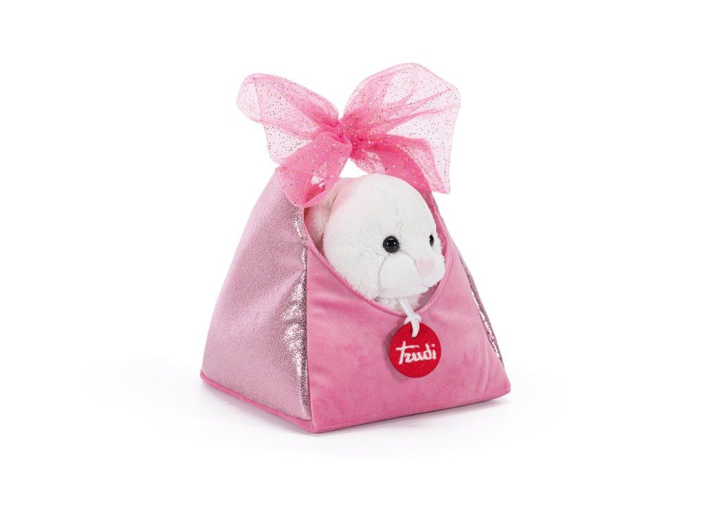 Vo vnútri tašky je mäkký biely zajačik. Taška môže vášej malej slečne slúžiť aj ako módny doplnok k oblečeniu.