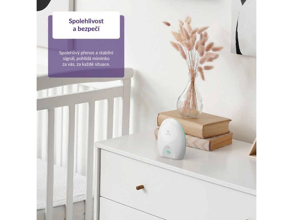 Okrem spoľahlivého signálu disponuje opatrovateľka indikáciou slabej batérie a regulátorom hlasitosti. Súčasťou detskej jednotky je praktické nočné svetielko, vďaka ktorému môžete pohodlnejšie reagovať na potreby svojho bábätka.