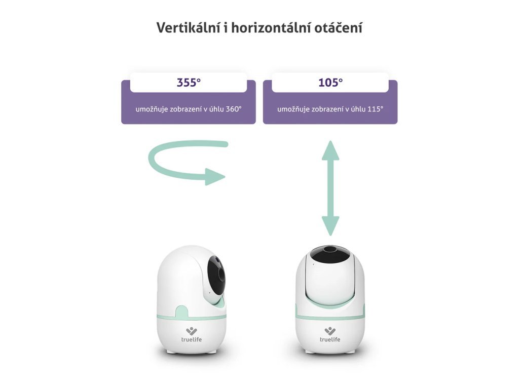 - Vertikálne aj horizontálne otáčanie: Kamera opatrovateľky sa vie otáčať horizontálne o 355° a vertikálne o 105°. Vďaka širokému pozorovaciemu uhlu ale umožní vidieť celých 360° horizontálne a 115° vertikálne. Rozhodne vám teda nič neunikne, dohliadnete do každého zákutia.