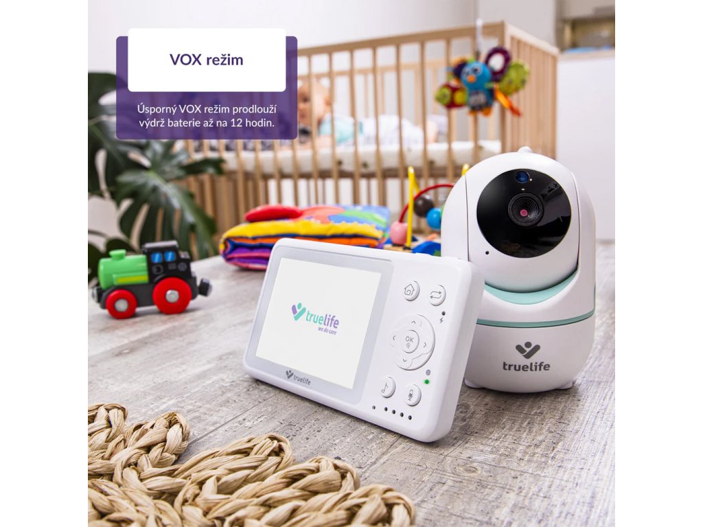 Opatrovateľka má v sebe nahraných päť uspávaniek, ktoré dieťatku môžete pustiť pre upokojenie. Máte však aj možnosť upokojiť ho vlastným hlasom vďaka obojsmernej komunikácii. Rodičovskú jednotku so sebou bez obáv noste, jej výdrž je veľká, činí až 8 hodín pri zapnutej obrazovke a až 12 hodín v úspornom režime. Ten poskytuje VOX režim, ktorý batériu šetrí tým, že displej zapne iba vo chvíli, keď sa niečo deje. Na rodičovskej jednotke môžete tento režim kedykoľvek aktivovať či deaktivovať pomocou vlastného VOX tlačidla. Jednoduché je na opatrovateľke ovládanie aj pripevnenie. Buď je možné využiť pribalené súpravy na montáž na stenu, prípadne dokúpiť špeciálny držiak TrueLife NannyCam Holder, ktorý stačí len obmotať okolo povrchu.