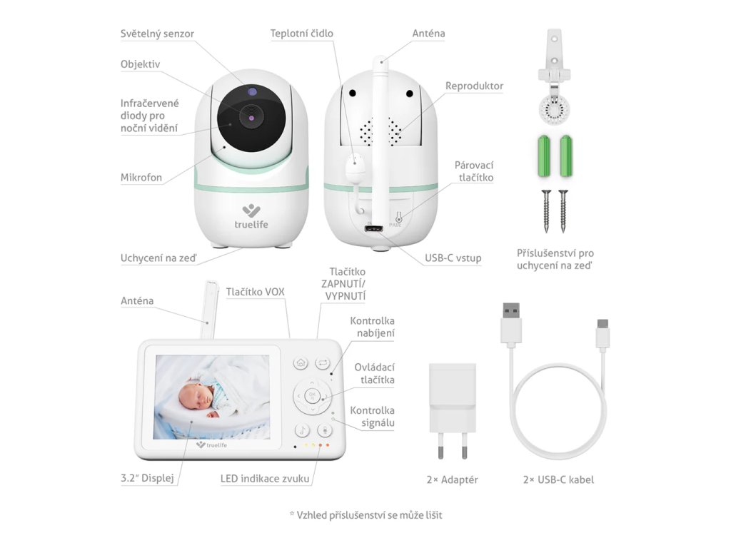 - Flexibilné uchytenie: Balenie obsahuje montážnu sadu na jej uchytenie na stenu. Možné je dokúpiť aj praktický držiak TrueLife NannyCam Holder, ktorý jednoducho obmotáte napríklad za pelesť detskej postieľky. Pre jeho skladnosť sa hodí aj na cesty.