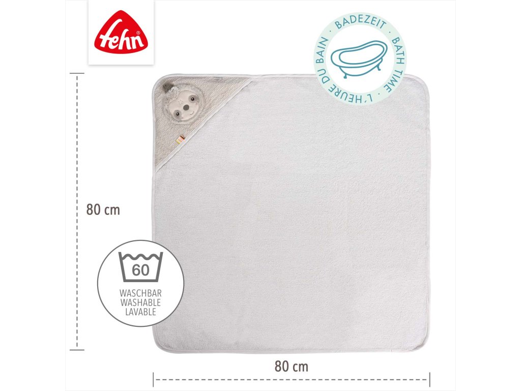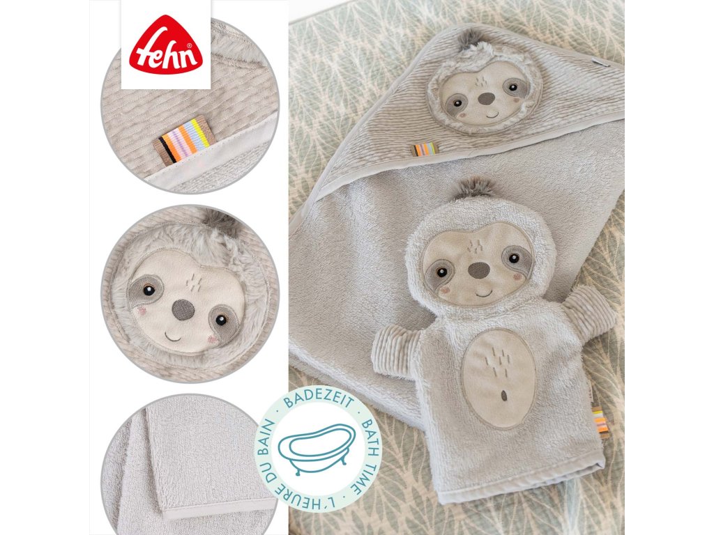 Froté ručník s kapucňou a motívom roztomilého leňochoda - savý a mäkký -