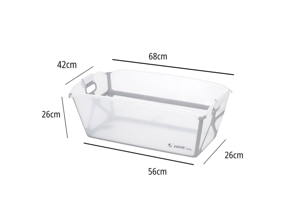 Skladacia detská vanička Jané Oasis je praktické riešenie na kúpanie dieťaťa od narodenia až do 4 rokov. Kombinuje maximálnu skladnosť a nadštandardnú stabilitu. Vďaka ultra-kompaktnému systému skladania ju ľahko uložíte do malého priestoru alebo vezmete na cesty. Vanička má pevnú jednoliatu plochú základňu, ktorá je stabilná a bábätku poskytuje pohodlnú a bezpečnú oporu. Premyslené prvky bezpečnosti (protišmyková základňa, poistky proti samovoľnému zloženiu) zaisťujú, že je vanička pri kúpaní bezpečná a spoľahlivá. Vodu ľahko vypustíte cez mäkkú zátku, ktorá je umiestnená tak, aby nebola v kontakte s dieťaťom.Vďaka dvom držadlám vaničku ľahko prenesiete.