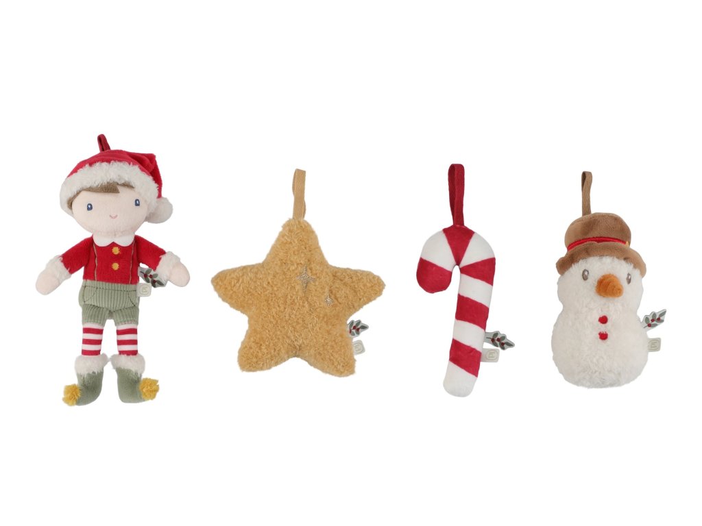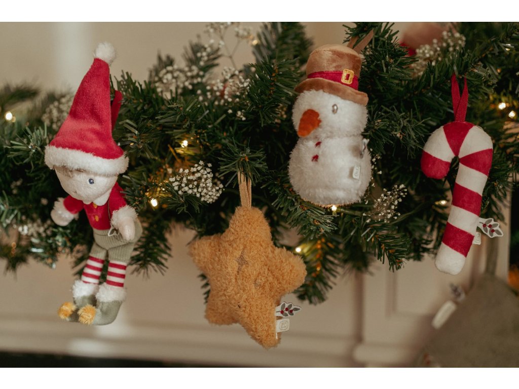 Rozkošná sada štyroch plyšových ozdôb Little Dutch vnesie do vášho domova hrejivú atmosféru Vianoc. V darčekovom balení nájdete postavičku Jima vo vianočnom oblečení, usmievavého snehuliaka, sladkú cukrovú paličku a žiarivú hviezdu. Vďaka mäkkému a ľahkému materiálu sú ozdoby bezpečné pre malé deti a ľahko sa vešia na vianočný stromček, vetvičku alebo girlandu. Spoločné zdobenie stromčeka sa tak stane kúzelným rodinným okamihom, ktorý si budete užívať rok čo rok.