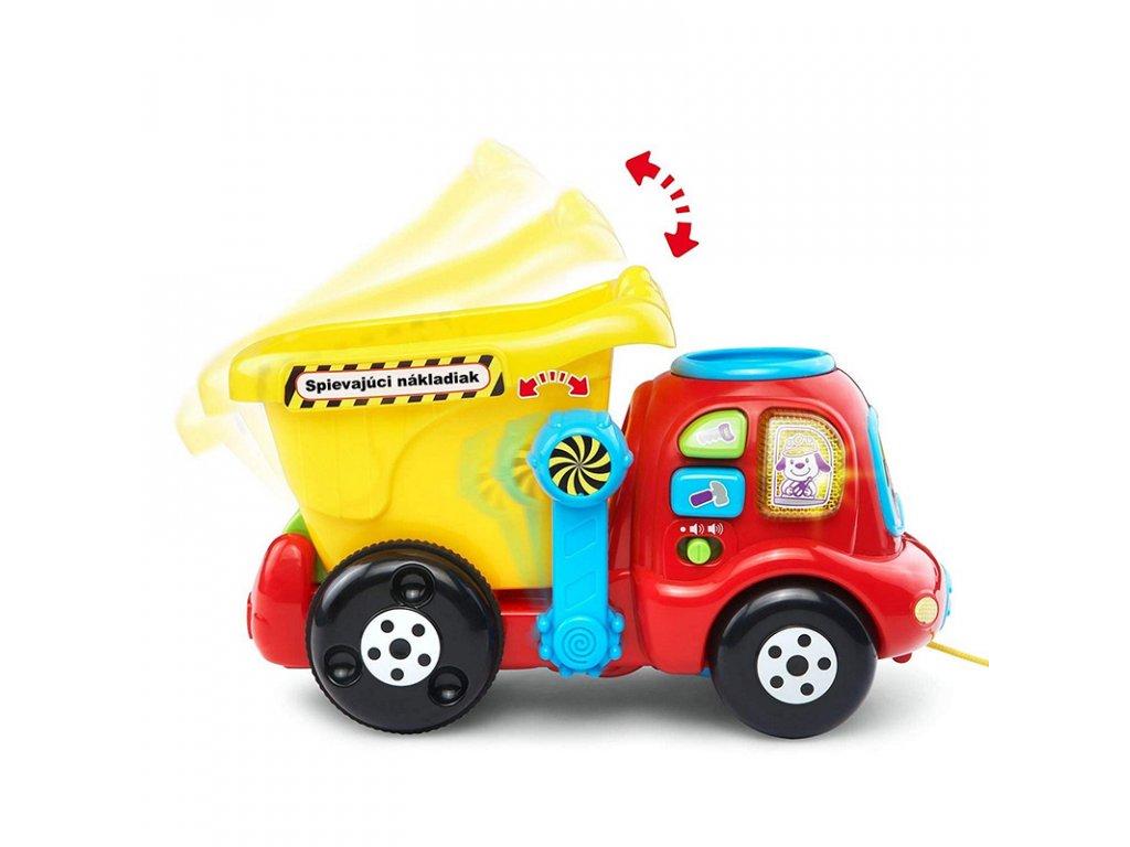 Vtech "Spievajúci nákladiak" je interaktívna nákladné auto so sklopnou korbou, špagátom na ťahanie a otvorom v streche pre hádzanie loptičiek (kameňov). Loptičky po vhodení skĺznu na korbu a auto je navyše nahlas počíta (1,2,3). Tiež interaktívne vyzýva deti k hre, napríklad vetou: "Daj kamene do otvoru na streche!" Nákladiak pomenuje aj niektoré nástroje (píla, kladivo, skrutkovač) a zaspieva 2 krátke pesničky.