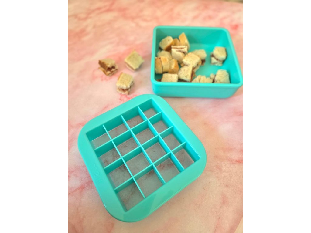 V dvojdielnej sade nájdete vykrajovače v tvare štvorca a trojuholníka. Jednoducho pritlačíte formičku na sendvič, syr, melón alebo inú pochúťku – a kývavým pohybom vykrojíte veselý tvar. Veľkosť vykrajovačov je navrhnutá tak, aby sa využilo maximum z bežného sendviča bez zbytočného odpadu.