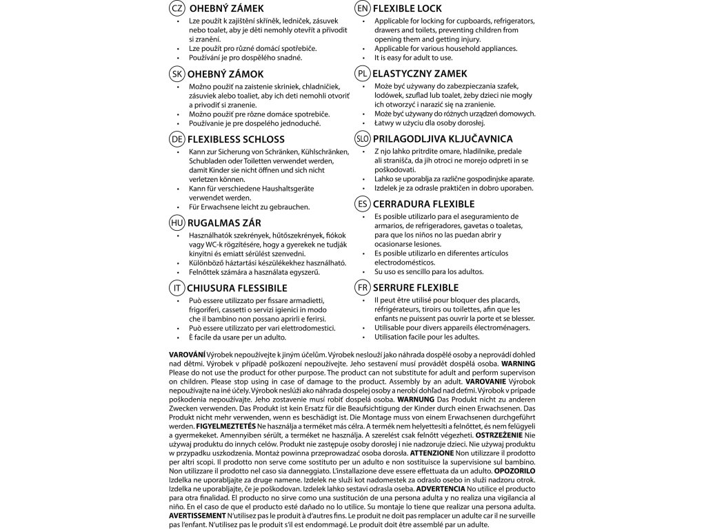 • Ohybné zámky sú určené na zabezpečenie skriniek, zásuviek či