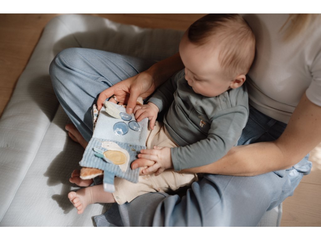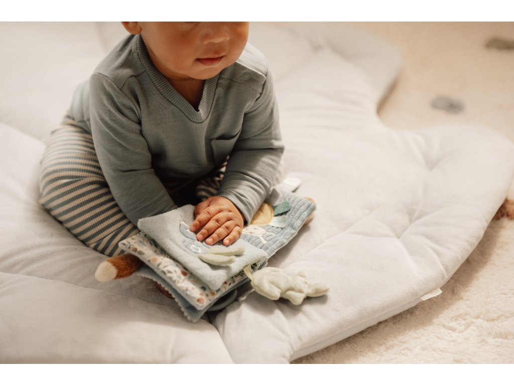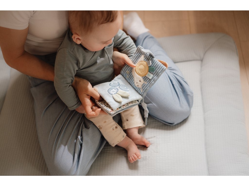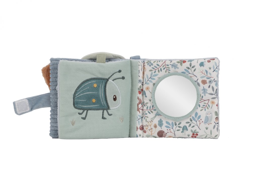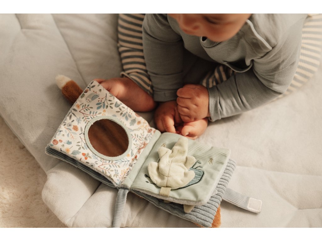 Mäkká textilná knižka s krásnymi motívmi zo života v lese upúta pozornosť vášho dieťaťa množstvom aktivít, ukrytých na jednotlivých stránkach. Na skúmanie a prezeranie lákajú šuštiace aj pískacie stránky, rôznorodé textúry alebo napr. bezpečné zrkadlo. Knižka pomáha rozvíjať jednotlivé zmysly dieťaťa aj koordináciu ruka/oko.