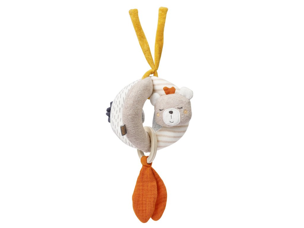 je aj hrkálka a drevený krúžok pre podporu koordinácie. Vďaka praktickej